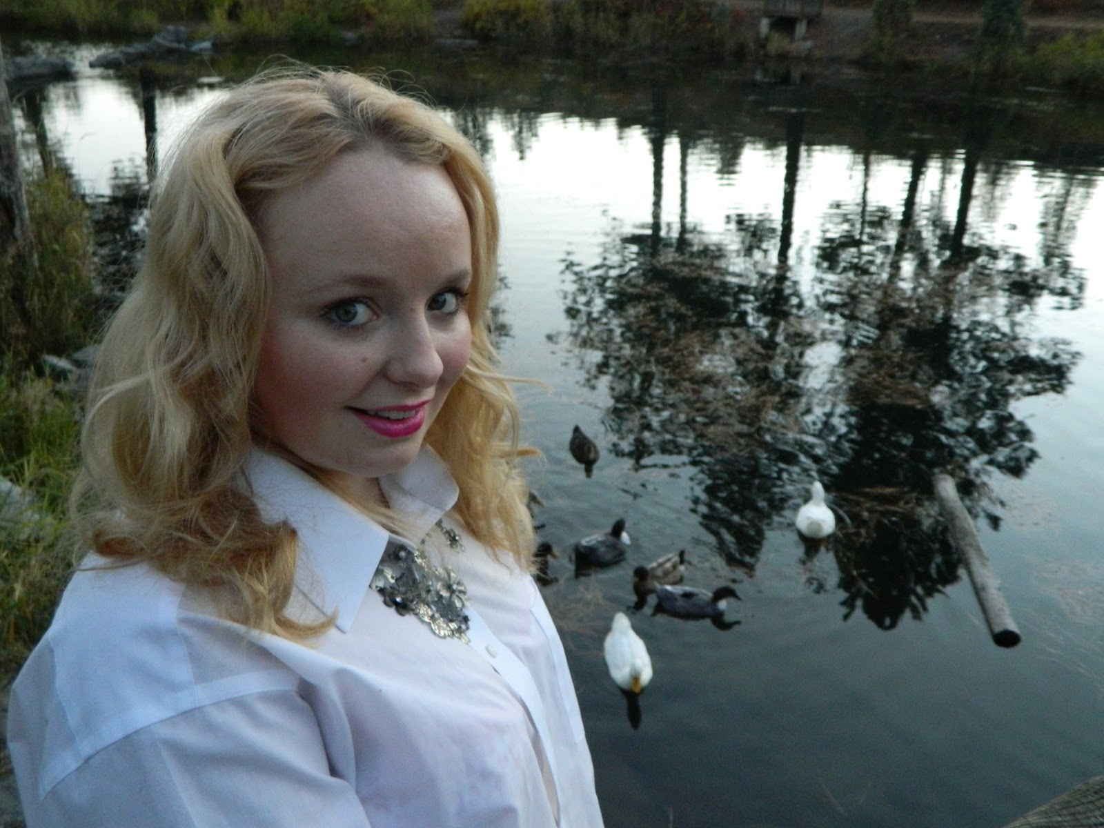 The Seventies was a time of many changes, including many changes in fashion. Mini skirts and wide legged pants became popular, compared to the longer style skirts from the 50's and 60's. I chose white pants for this look because they remind me of the pant suit and disco outfits that became fashionable. The top I wore is 100% polyester, so it a softer, suede-like material than people normally wear today, but I could see it as popular back then. And if you love really soft material you will like something like it too! For my hair I tried to recreate the feathered look that you can see on famous ladies such as Farrah Fawcett.
