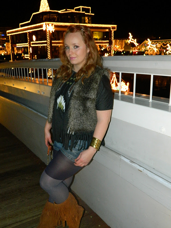 For the last day of 2011 I wore this Karashian Kollection corset-inspired maxi dress. I really like the print, which they call "Vintage Tiger". I need to get it hemmed a little, because it is a bit long, but wearing heels helped. Although we spent the morning in Red Lodge, we drove to Billings for a party that night. Billings is the largest city in Montana, and it is great for my boyfriend and I to see friends we used to go to college with at Montana State University. I hope you enjoy these pictures. Some pictures have Native American pieces. What did you do for New Year's Eve? Did you go to a party or stay in with family and friends?